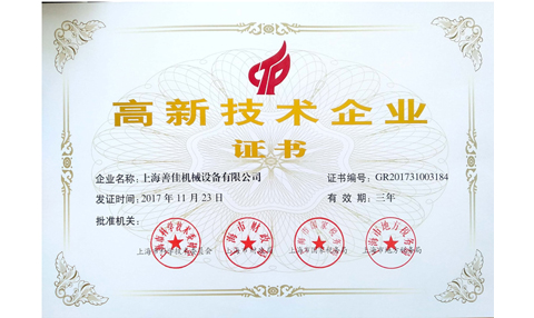 2017年11月23日,經(jīng)上海市科學(xué)技術(shù)委員會、上海市財政局、上海市國家稅務(wù)局、上海市地方稅務(wù)局批準(zhǔn)我司第二次榮獲高新技術(shù)企業(yè)證書。